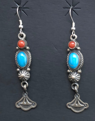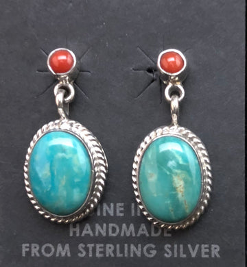 Turquoise & Red Coral Sterling Silver Post Earrings